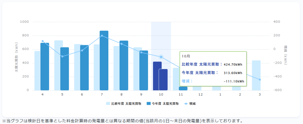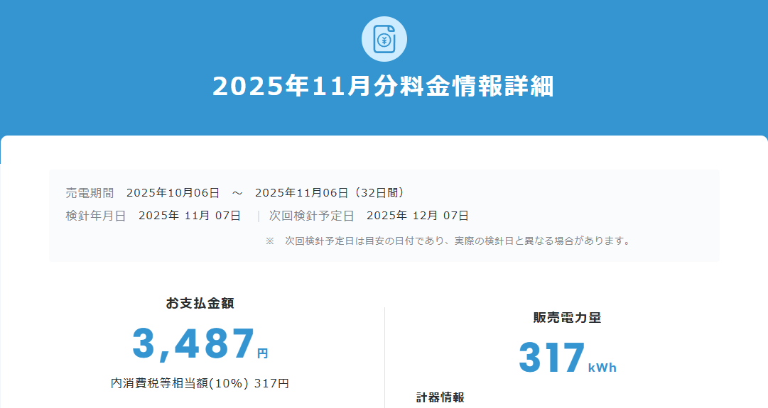 今回は2025年10月実績の電気代と太陽光発電売電です。