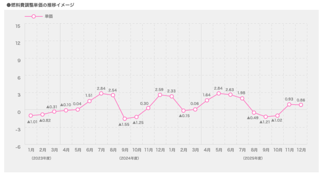 2025年11月使用分は0.86円/kWhと少し値下がりです。