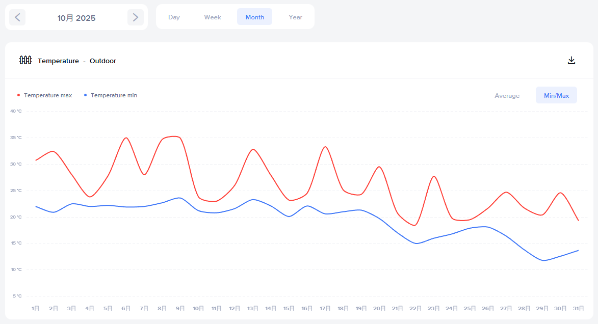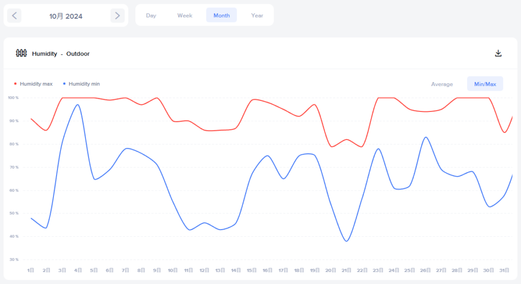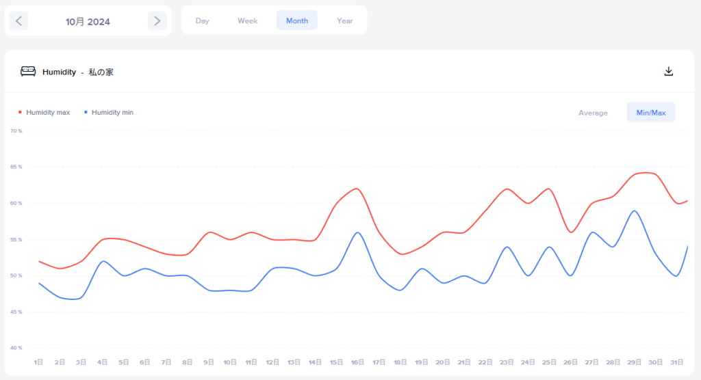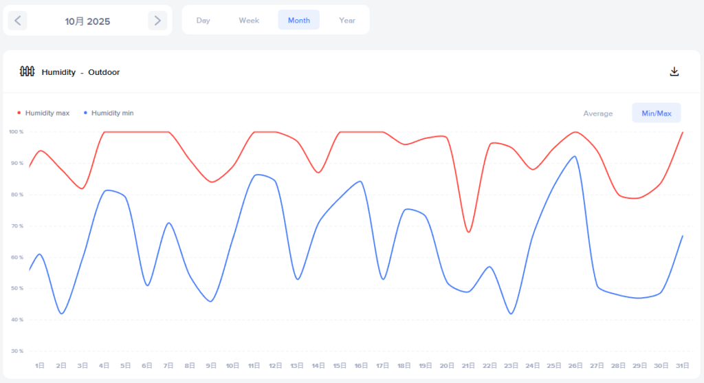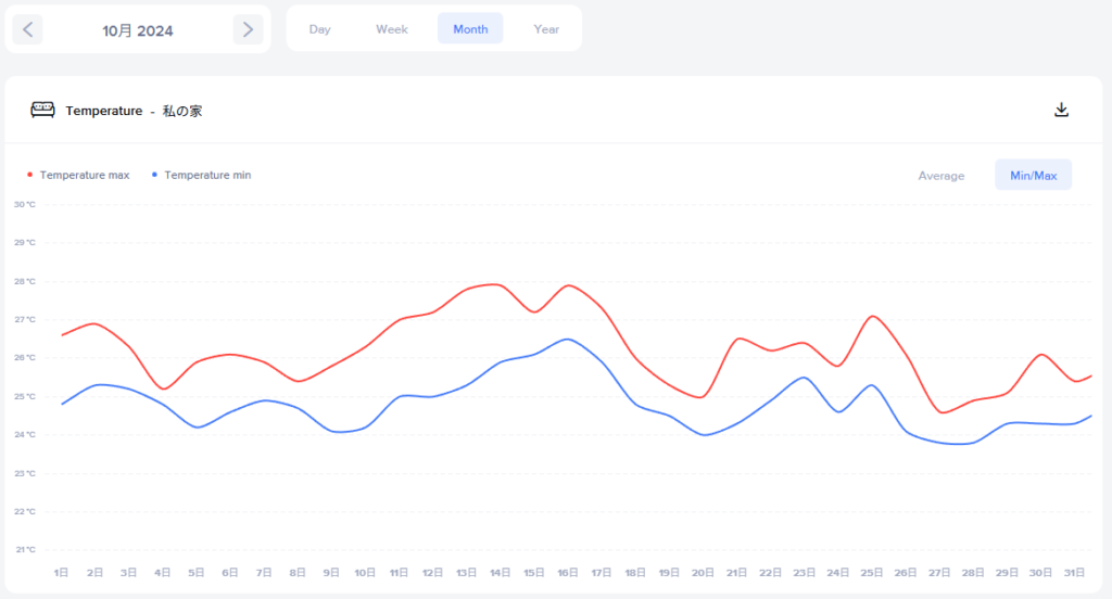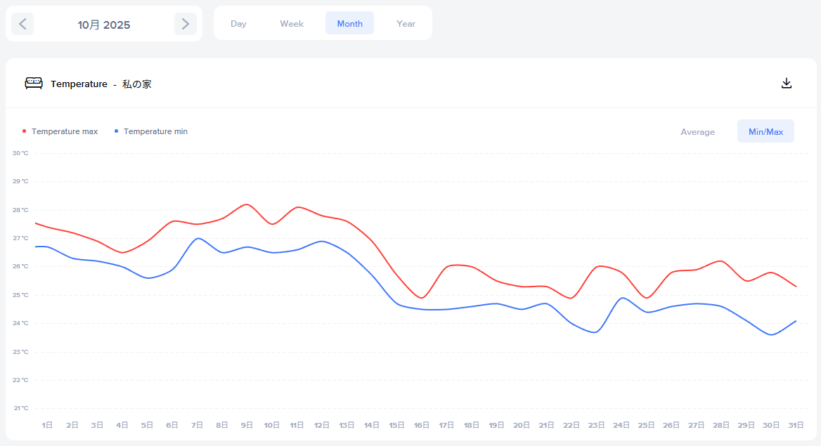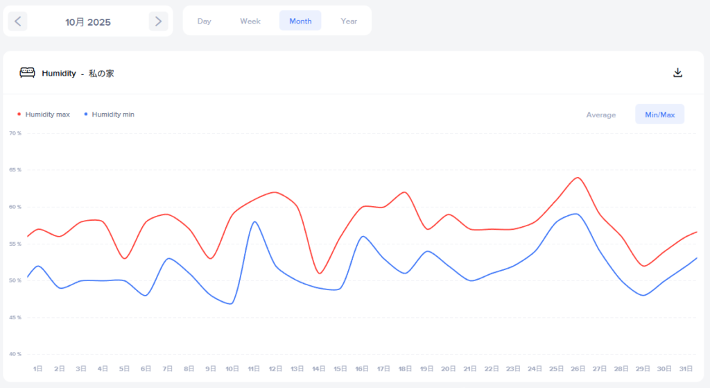 2025年10月と2024年10月の我が家の中と外の気温・湿度推移