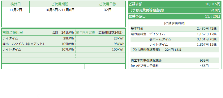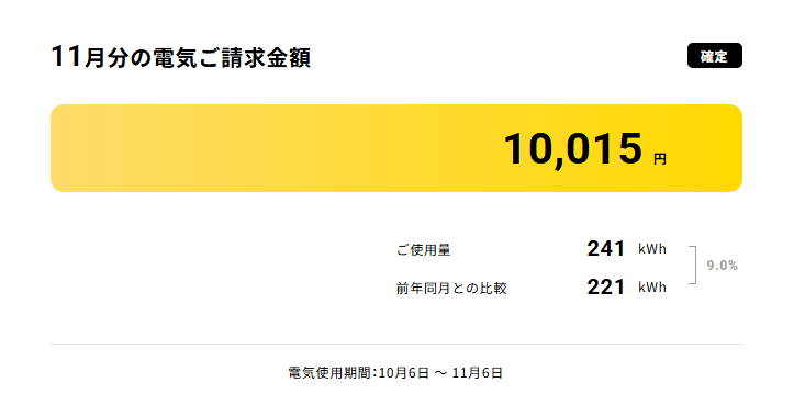 ※「11月分」は11月請求分という意味で、電気使用月は主に10月です
