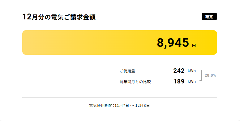 ※「12月分」は12月請求分という意味で、電気使用月は主に11月です