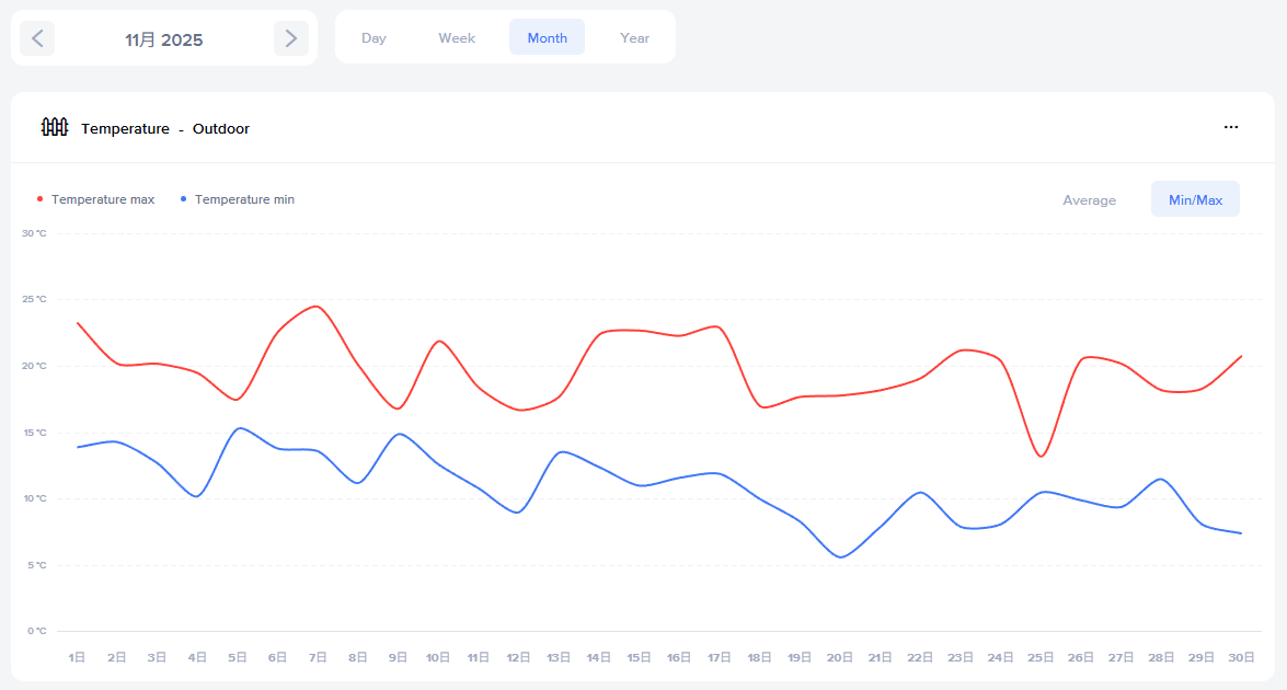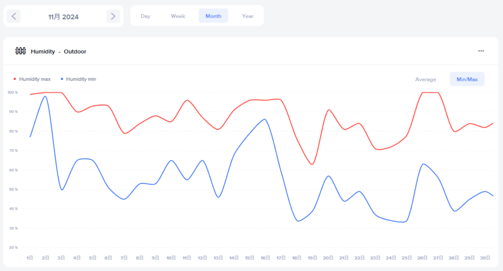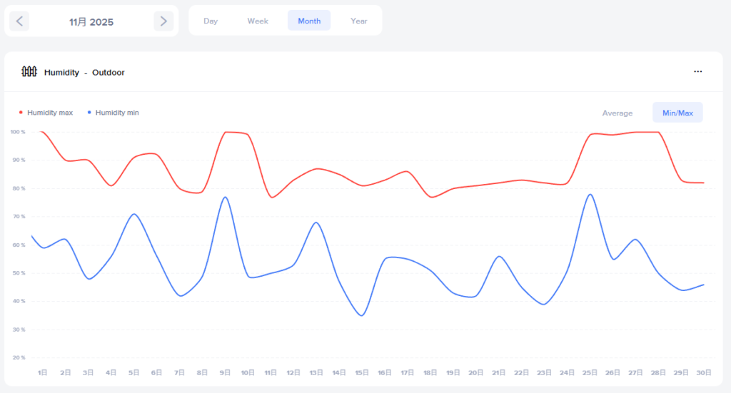 2025年11月と2024年11月の外の湿度推移は↓