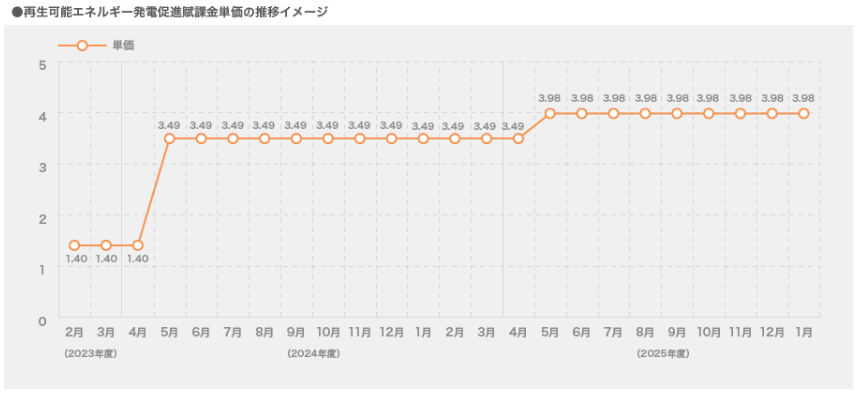 再生可能エネルギー発電促進賦課金単価↓