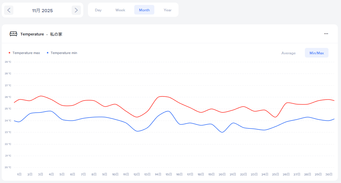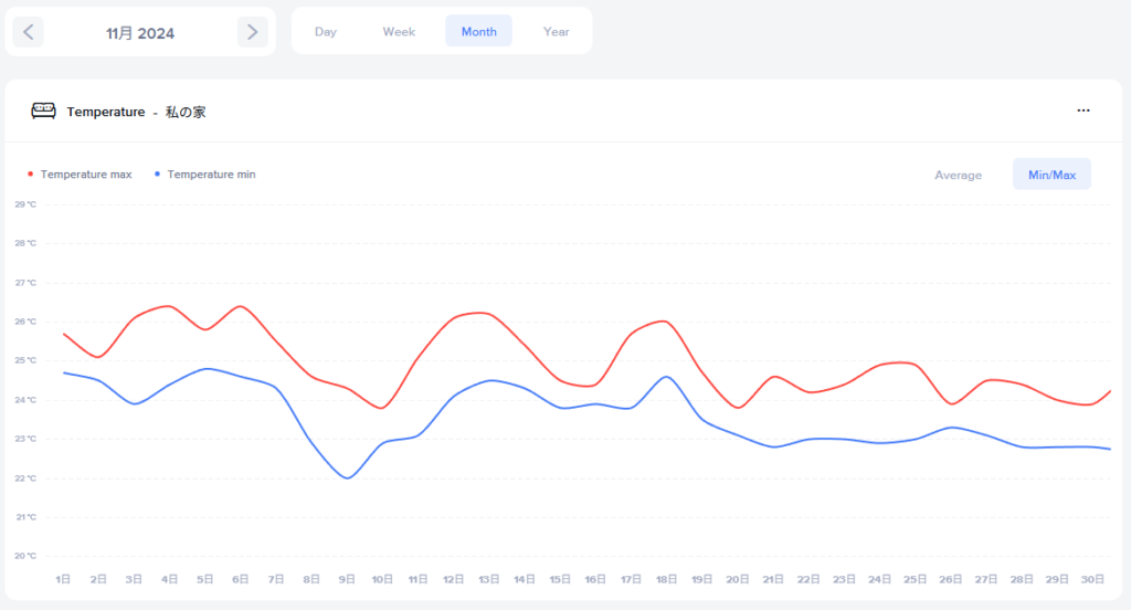 2025年11月と2024年11月の室内気温推移は↓