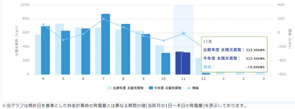 2025年11月実績の太陽光発電売電実績