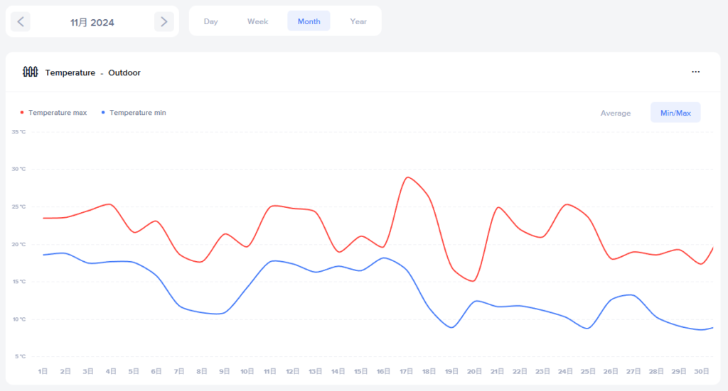 2025年11月と2024年11月の外気温推移は↓