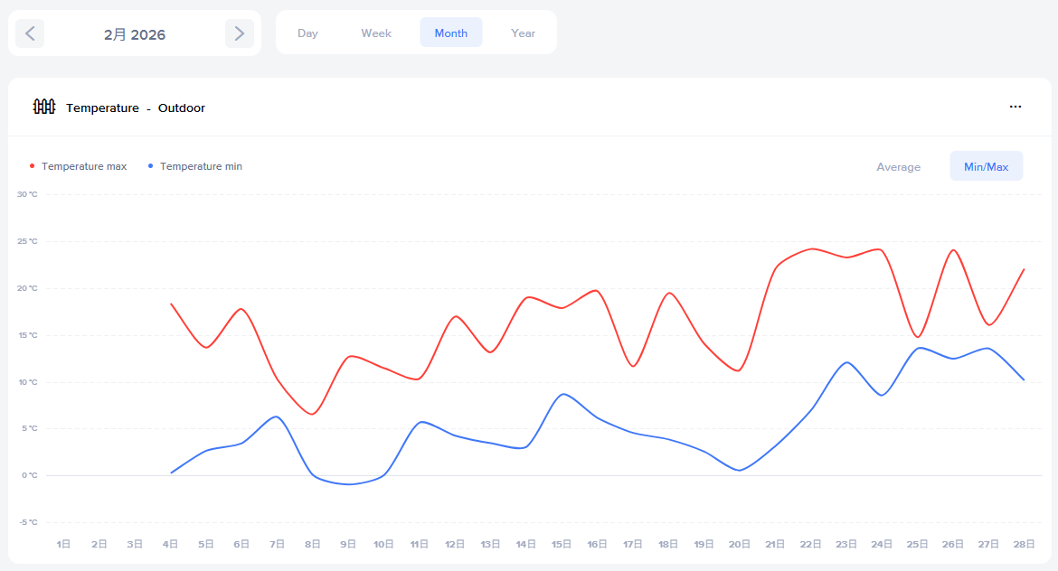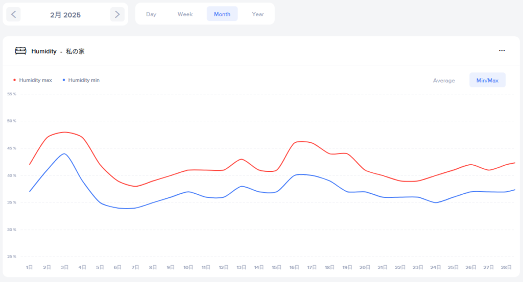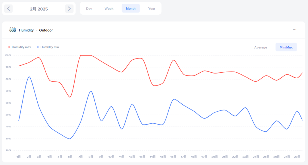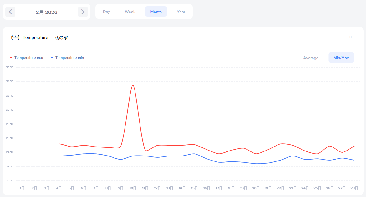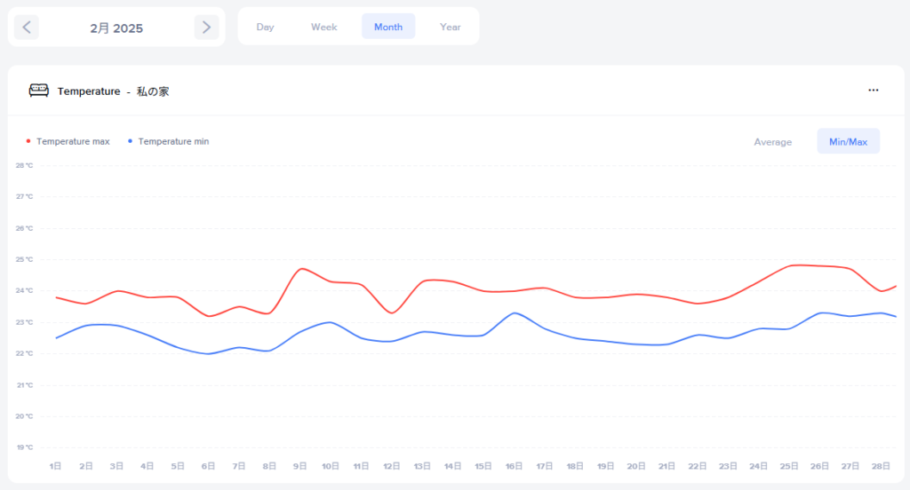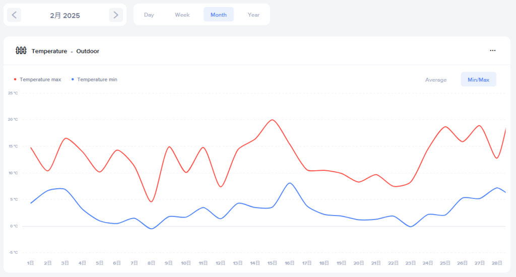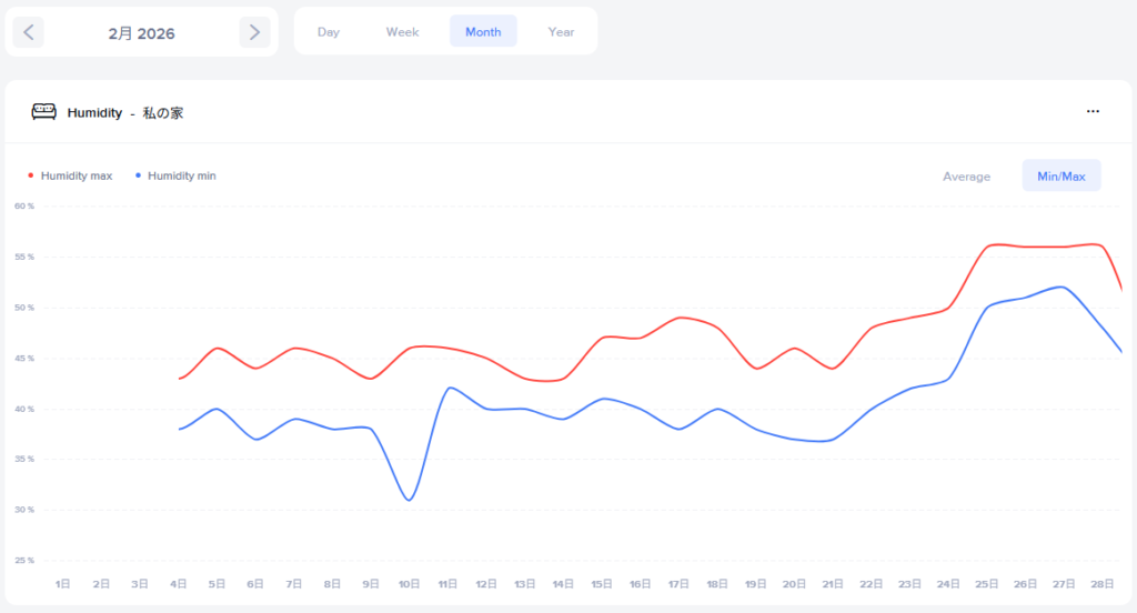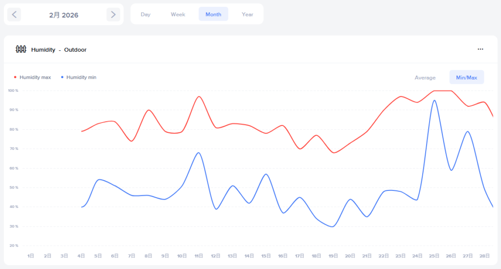 2026年2月と2025年2月の我が家の中と外の気温・湿度推移