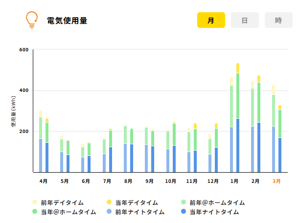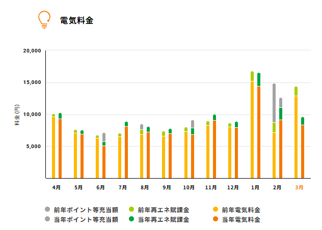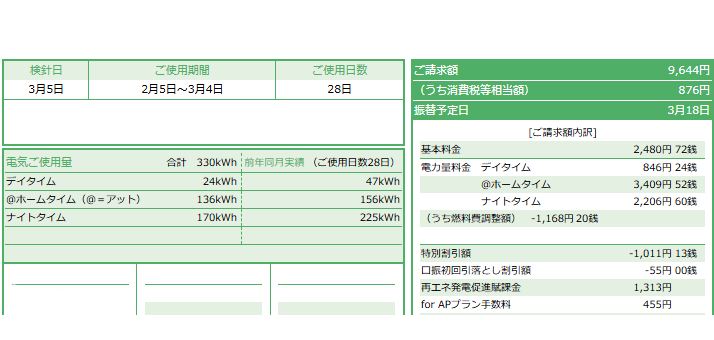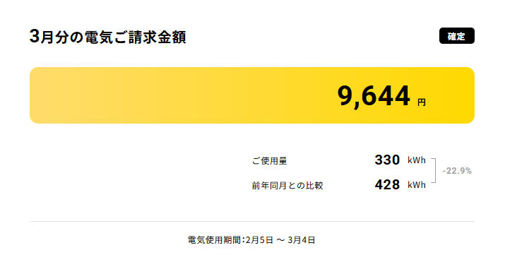 ※「3月分」は3月請求分という意味で、電気使用月は主に2月です