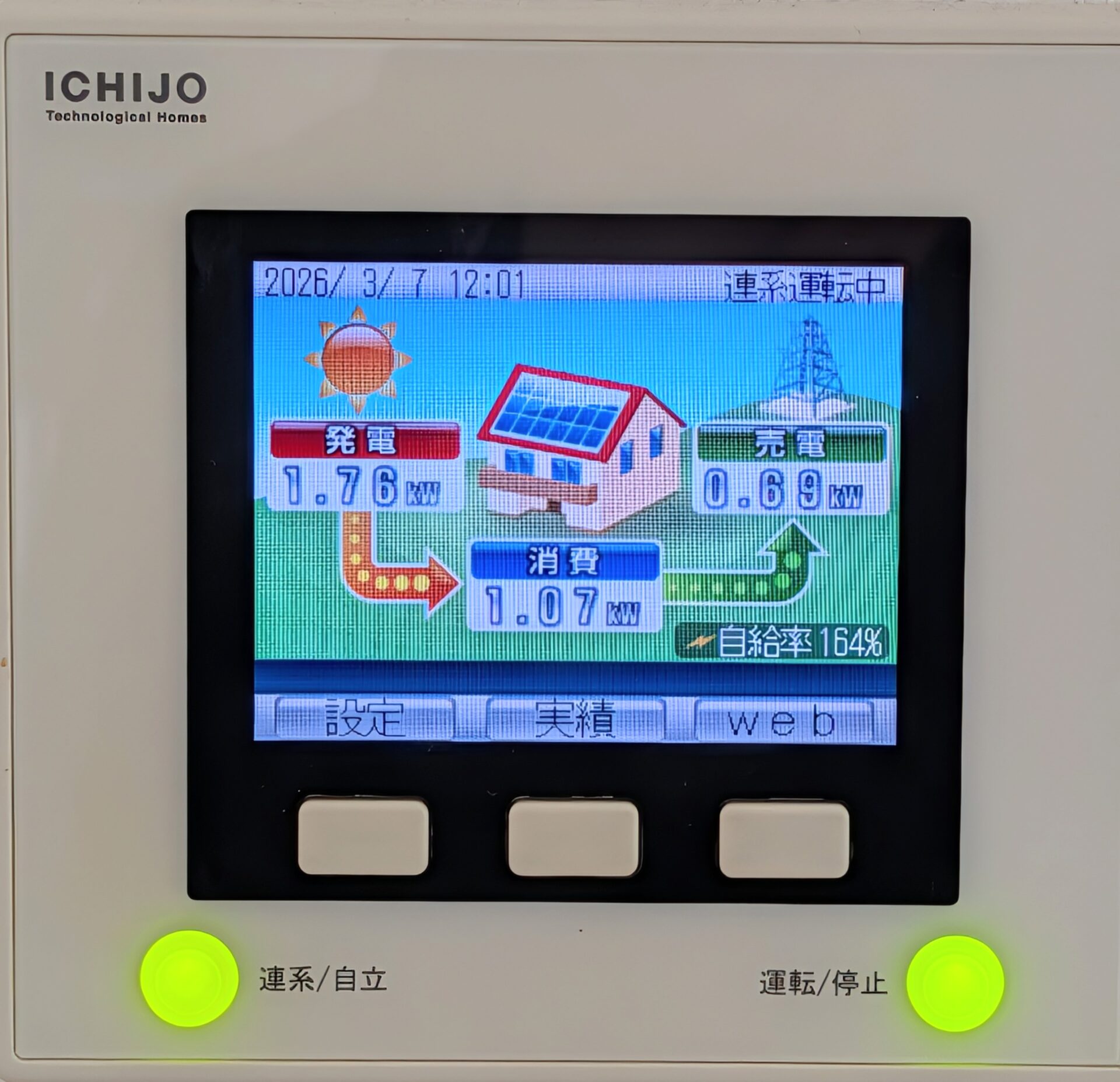 売電単価:11円/kWh(2023年3月より 10年固定価格買取制度{FIT制度}終了 →一条でんき 買取に切り替え)